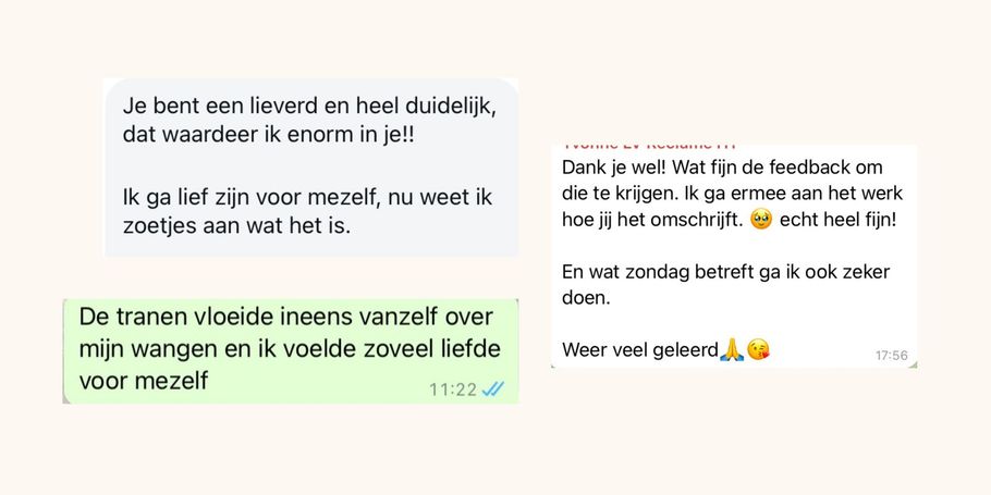 Wat je mee naar huis neemt is meer dan ontspanning. Je stapt naar buiten met helderheid, innerlijke rust, een gevoel van gedragen worden en praktische handvatten om dit gevoel vast te houden. Je herinnert je de kracht van jouw zachtheid. Je ervaart hoe helend het is om écht te mogen ontvangen, zonder iets te moeten geven.